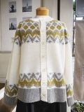 襟から前立てと袖口や裾の部分に編み地の変化を付けました